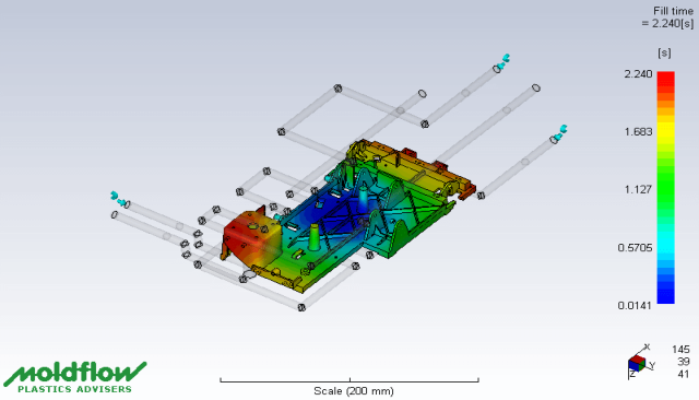 Moldflow allows us to simulate the manufacturing process of plastic parts from start to finish before the